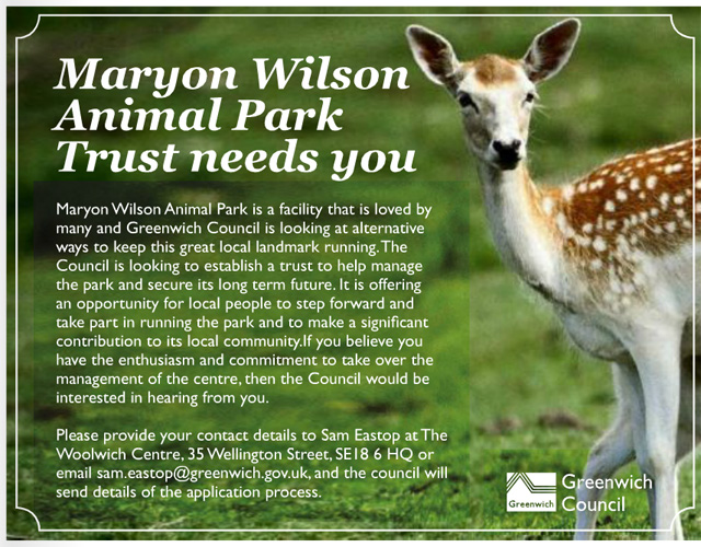 2 thoughts on “Could you help start Maryon Wilson Animal Park Trust?”