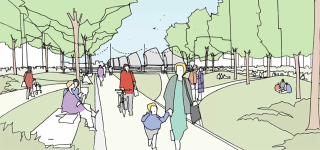 From Greenwich’s website – “The delivery of high value residential development will be dependant (sic) on the educational hub going ahead and the early delivery of the widening of the Thames barrier Park to enhance the landscape environment and setting for that new housing. The new housing will generate developer contributions…”