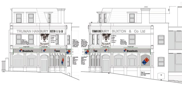 However, a second eagle insignia, at the side of the pub, is due to be hidden beneath Domino’s signage under the developers’ plans. The building is on the council’s local heritage list, which mentions both eagle motifs.