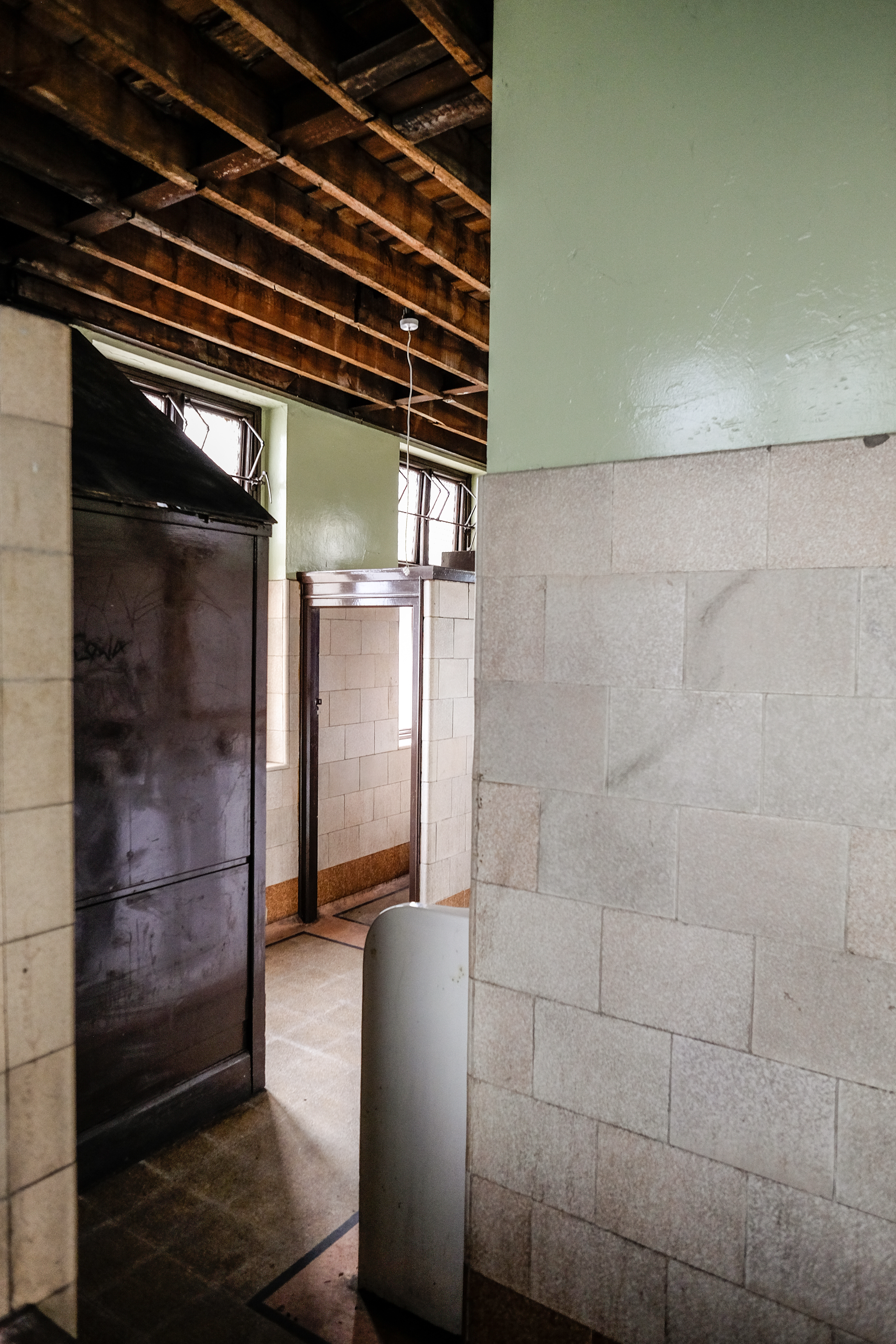 Asbestos has been removed and the interior cleaned up, revealing the public toilets last used in the early 1990s. The next phase of work will see these removed, interior partitions taken down, the windows replaced, then the space made available for temporary (dare we say pop-up?) uses.