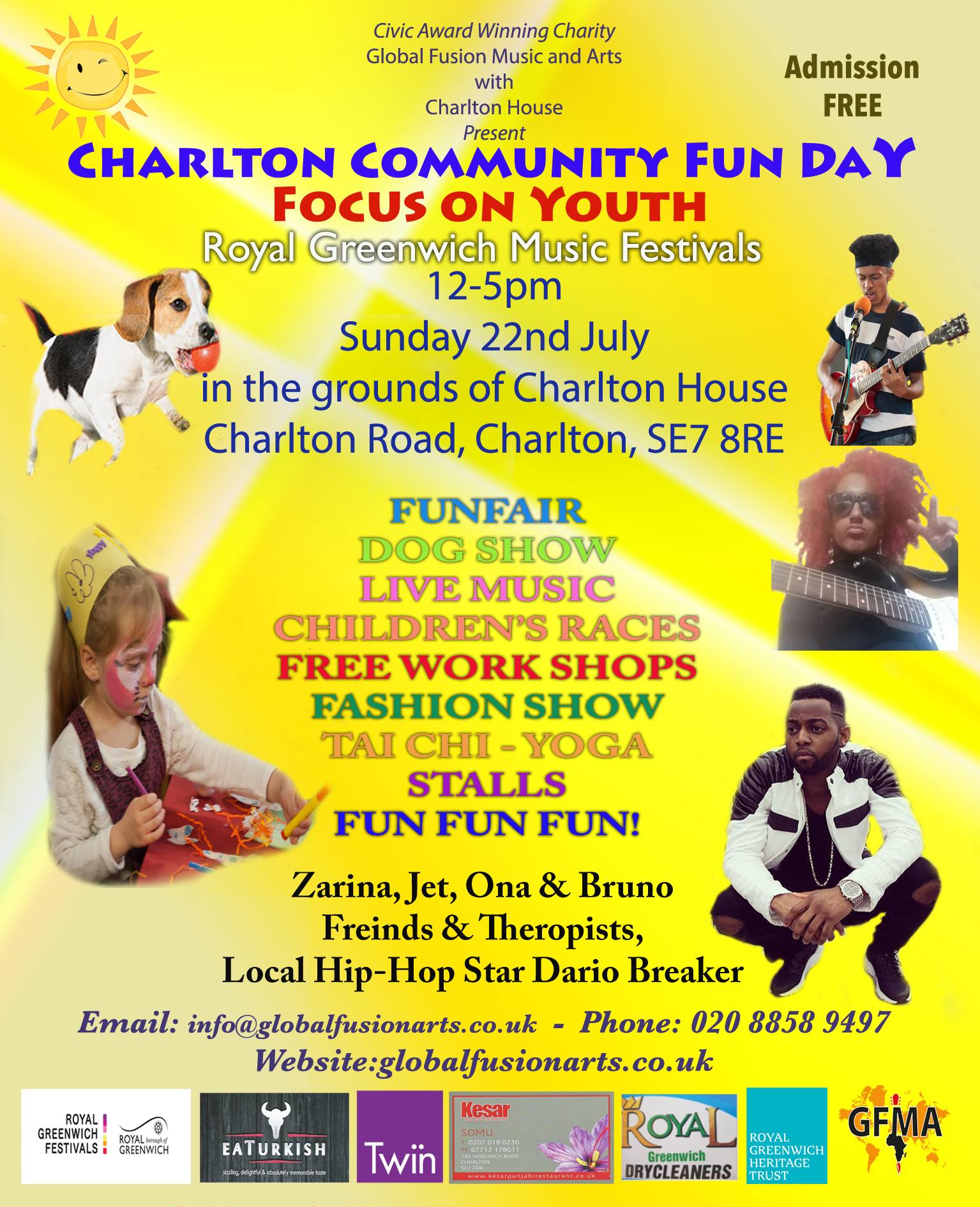 Global Fusion Music And Arts and Royal Greenwich Heritage Trust are running a Community Fun Day and Dog Show this Sunday, July 22nd, in the grounds of Charlton House. Themed ‘A focus on youth‘, the event takes place 12-5pm with the dog show at 2pm. Admission is free.